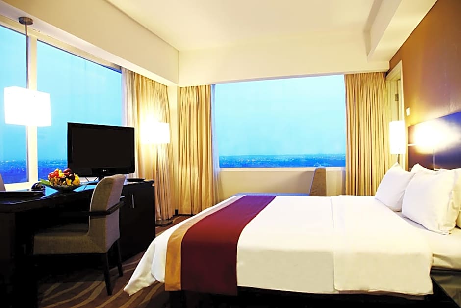 Offering city views from its large windows, this air-conditioned room provides a satellite TV, mini-bar and coffee/tea-making facilities. It has a work desk and a private bathroom.